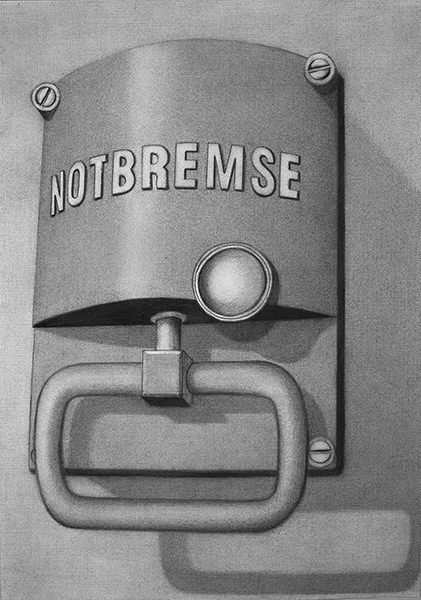 NOTBREMSE, WERKZEUG DER REVOLUTION, 2025, Kohle/Papier, 100 × 70 cm