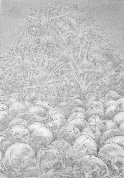 NACHT UND NEBEL 2025 [Alain Resnais, Majdanek 1944], Kohle/Papier, 100 × 70 cm